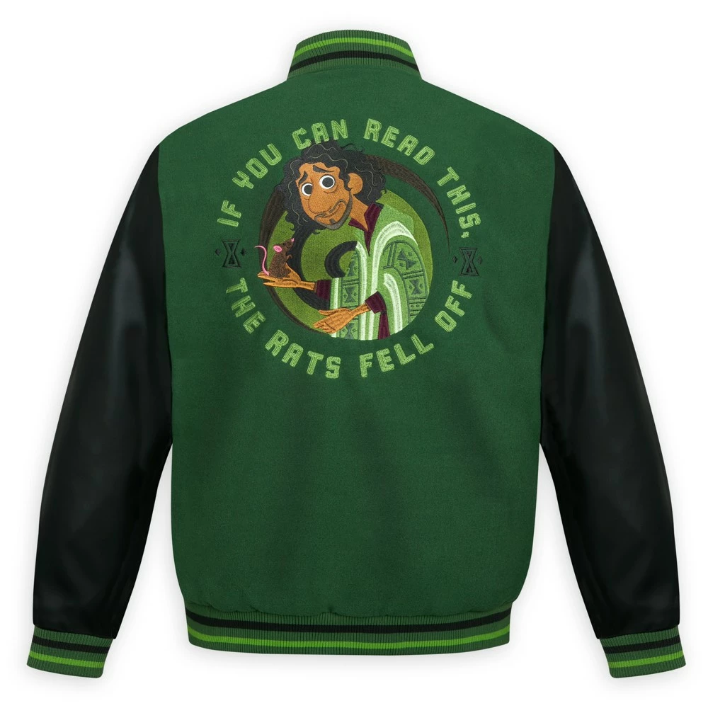 Les membres de la famille Madrigal ne veulent pas parler de Bruno, mais ce blouson style universitaire va délier plus d’une langue. Inspiré du film Disney, il comprend un motif personnage brodé, l’inscription énigmatique « If you can read this, the rats fell off » dans le dos ainsi qu’une silhouette sur la poitrine, au-dessus de son nom et d’un rongeur. Nul besoin des pouvoirs de Bruno pour savoir à l’avance que ce blouson deviendra votre préféré.