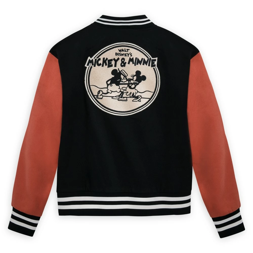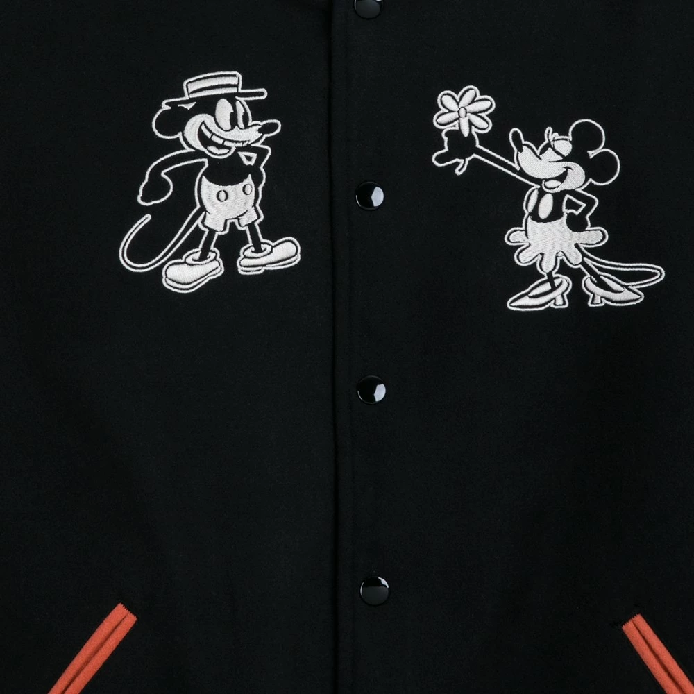 Team Mickey et Minnie pour toujours ! Ce blouson de style universitaire brodé à l’effigie de vos souris préférées vous aidera à relever n’importe quel défi. Un grand appliqué brodé du court-métrage de 1928, Mickey gaucho, décore l’arrière de la veste. Ce modèle emblématique comporte des manches contrastantes, des boutons pression sur l’avant et un col rayé. Vous vous sentirez au top avec !