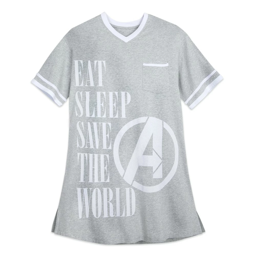 Cette chemise de nuit est très originale ! La liste imprimée sur le devant, « Eat Sleep Save the World », résume parfaitement le quotidien de n’importe quel super-héros. Vous pourrez rayer la partie « Sleep » avec style grâce à cette tenue en jersey de coton et son col en V à bordure de couleur contrastée !