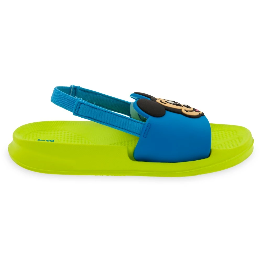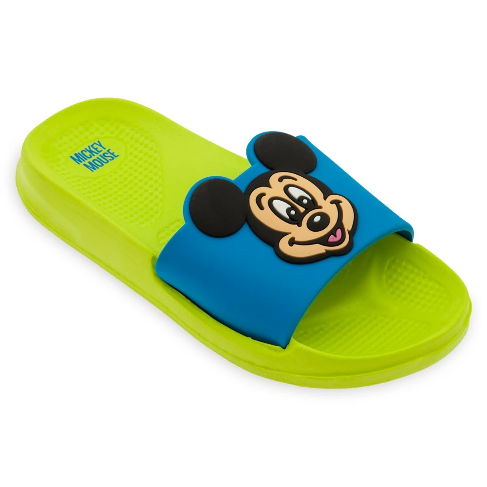 Votre enfant va adopter la mode Disney cet été ! Ces claquettes antidérapantes portent l’inscription « Mickey Mouse » sur la semelle et un motif personnage sur la bride.