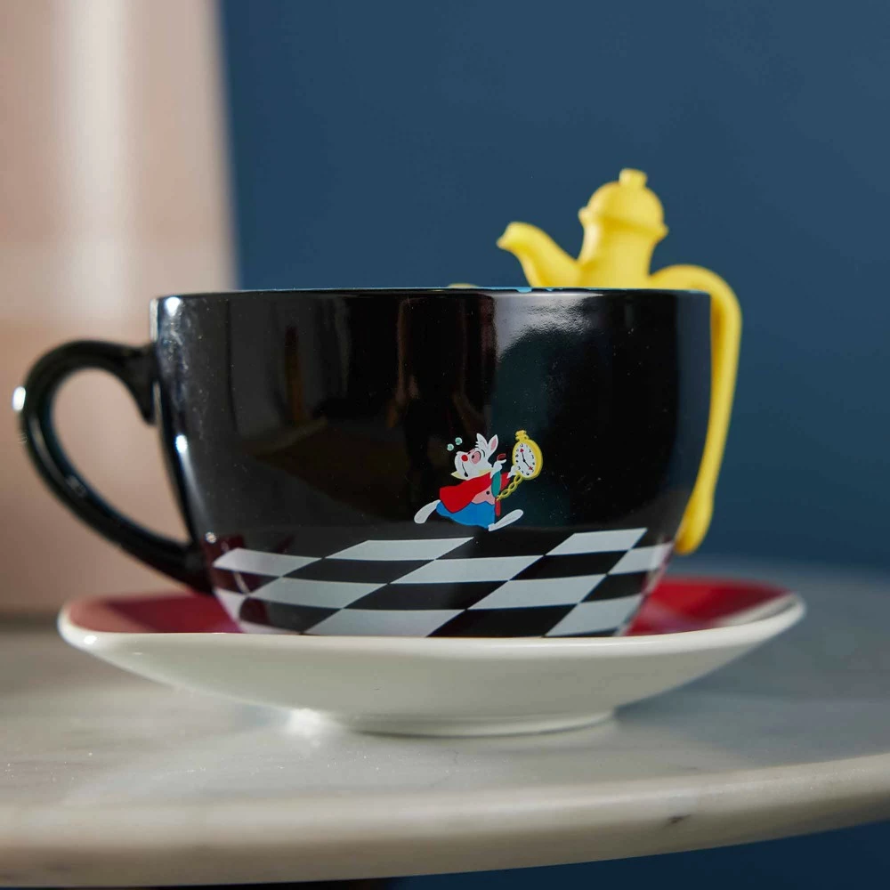 C’est toujours l’heure du thé au Pays des Merveilles ! Ce coffret tasse, soucoupe et infuseur comporte un motif à l’effigie d’Alice et du Lapin Blanc. Il est parfait pour les aventures qui vous attendent pour le goûter !