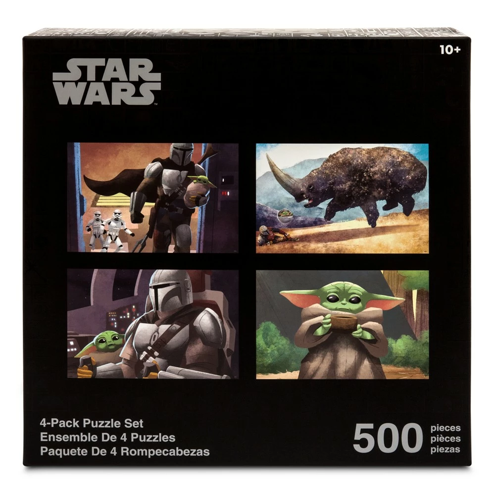 Composés de 500 pièces chacun, ces quatre puzzles venus des confins de la galaxie représentent différents motifs à l’effigie de Grogu et Mando.