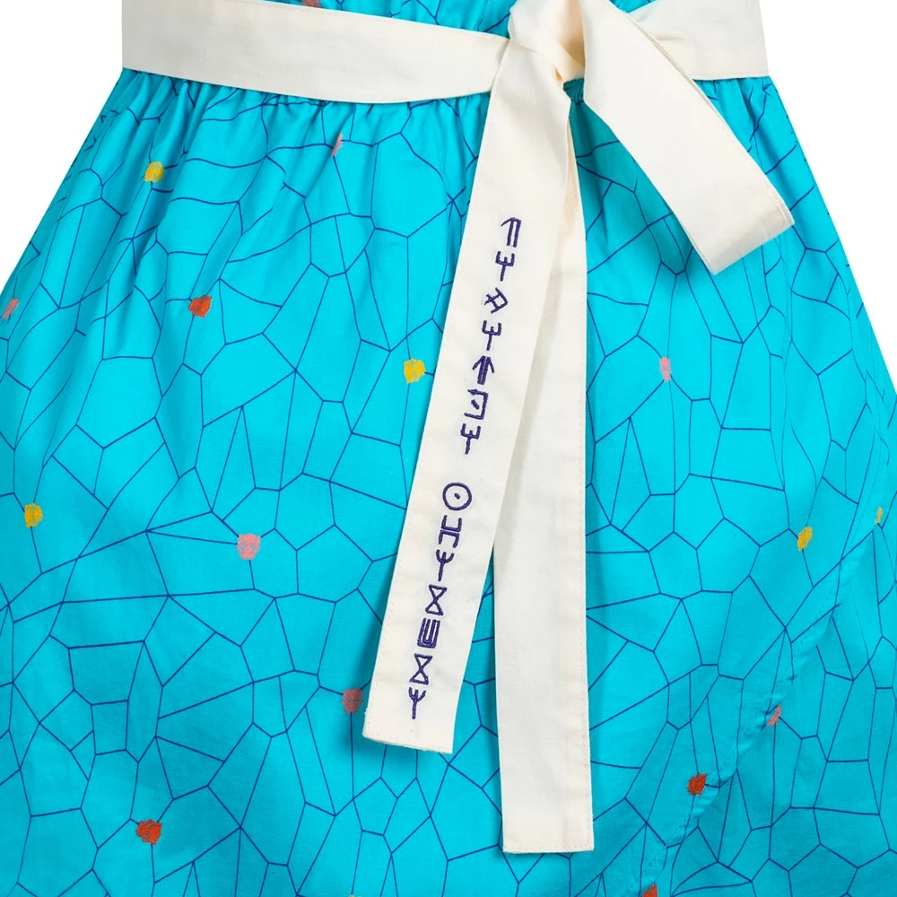 Ajoutez une touche royale à votre garde-robe avec ce haut Black Panther. Ce modèle présente un imprimé intégral discret et un noeud à la taille avec une inscription en wakanda, pour une tenue des plus charmantes.