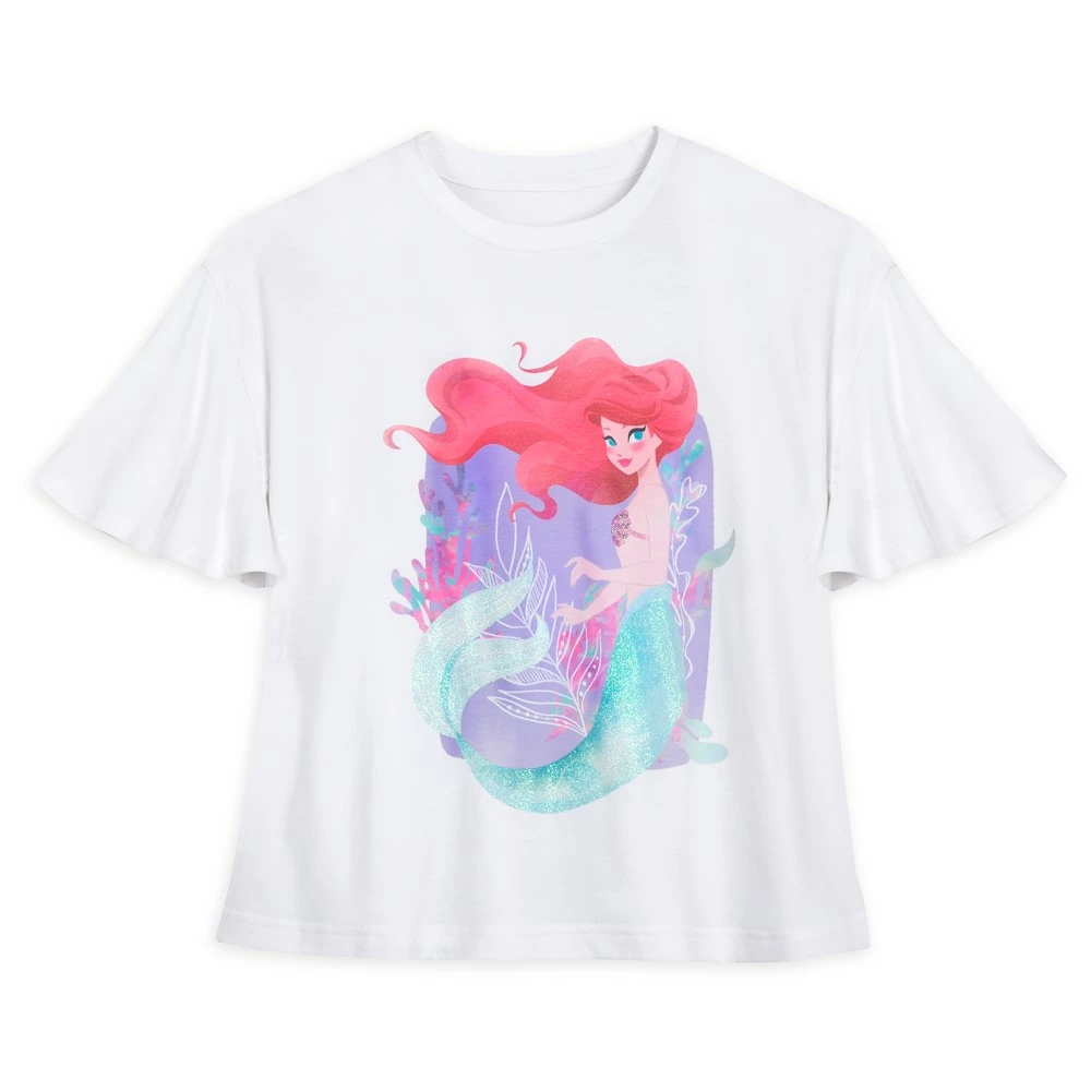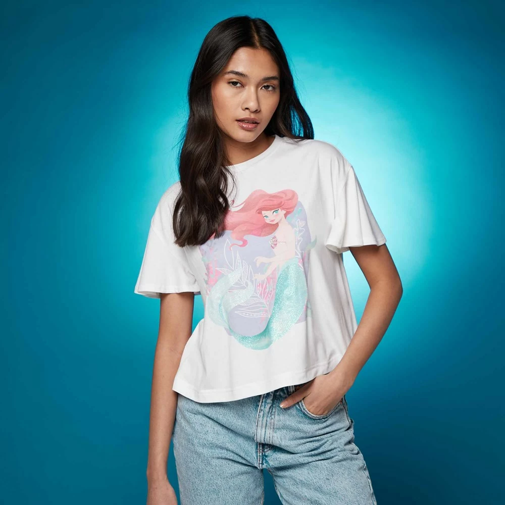 Avec ce haut La Petite Sirène, l’océan n’est jamais bien loin ! Ce modèle très mignon présente le portrait d’Ariel sur le devant et des manches à volants.