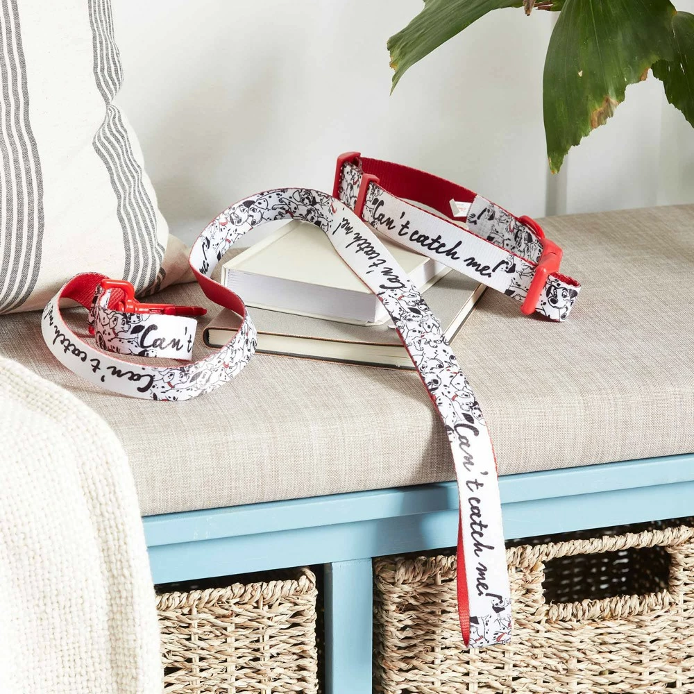 Voilà l’accessoire mode indispensable pour votre toutou ! Cette laisse 101 Dalmatiens est entièrement imprimée et décorée de garnitures contrastantes.