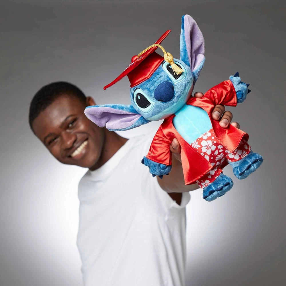 Félicitez les nouveaux diplômés parmi vos proches et vos amis ! Cette peluche moyenne fait partie de la classe de 2023. Avec ses détails brodés, Stitch porte une tenue en satin, le chapeau assorti et un foulard.