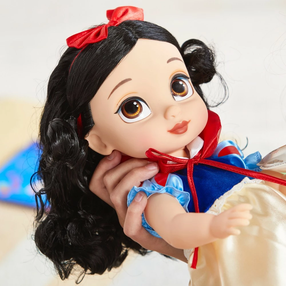 Nos artistes Disney ont remonté le temps pour imaginer Blanche Neige en petite fille, bien avant que la Reine ne jalouse sa beauté ! Avec sa jolie robe de satin et son ruban rouge dans les cheveux, cette poupée articulée semble presque vivante. Elle s’accompagne même d’un oiseau en peluche.
