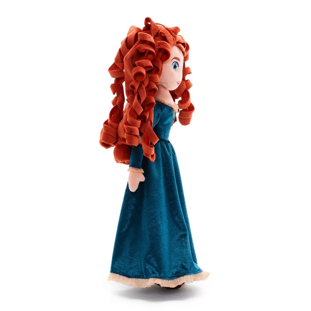 Découvrez le côté tendre de la fougueuse princesse Merida ! Cette jolie poupée au visage brodé et aux cheveux bouclés est vêtue de sa célèbre robe de velours.