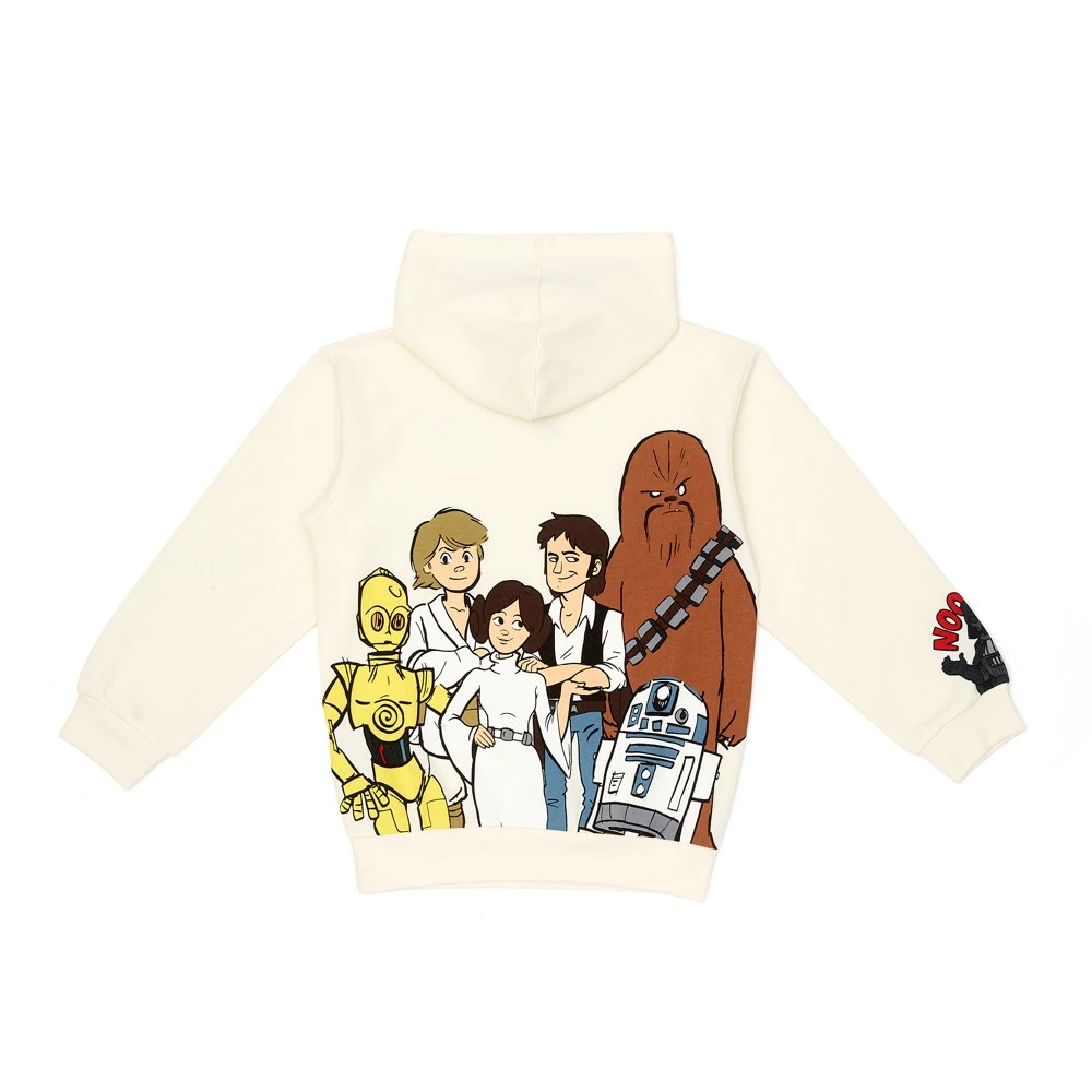- Motif dans le dos : C-3PO, Luke Skywalker, Princesse Leia, Han Solo, R2-D2 et Chewbacca