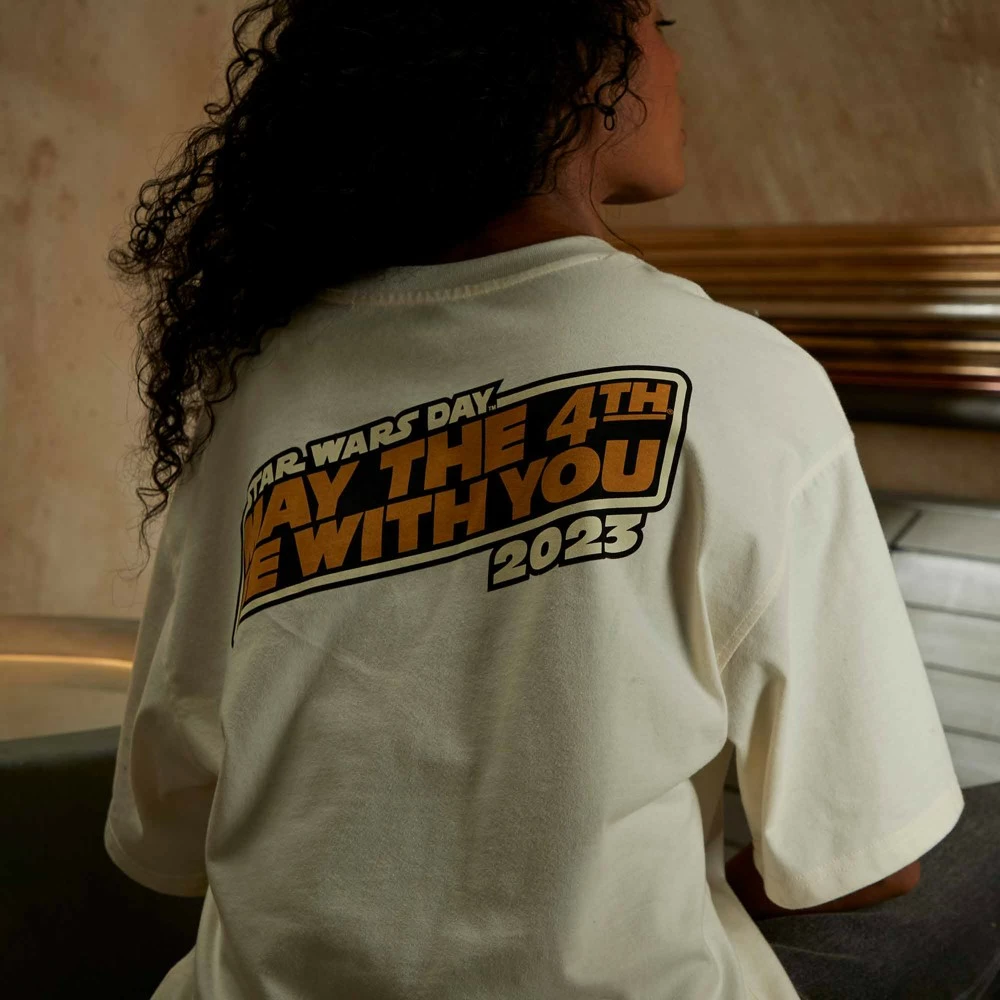 - Inscription « Star Wars Day May the 4th be with you 2023 » (Journée Star Wars 2023 : que le 4 mai soit avec vous) dans le dos