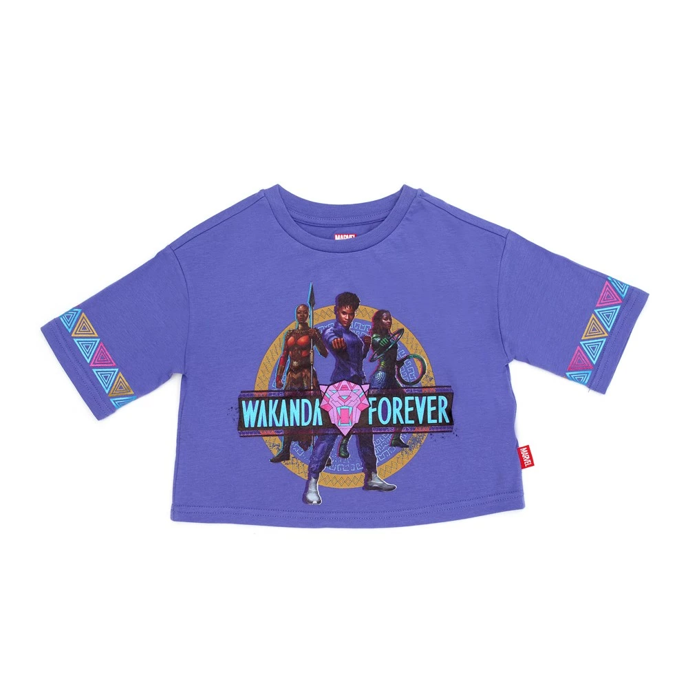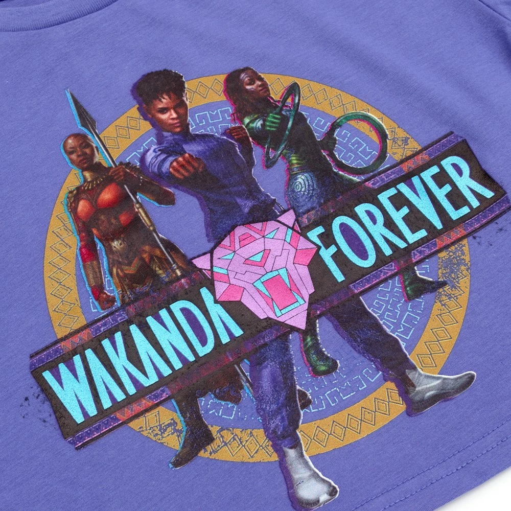 Dans ce t-shirt, votre enfant sera digne des Dora Milaje, un groupe de guerrières d’élite. Ce modèle court comprend un motif personnage classique et l’inscription « Wakanda Forever »