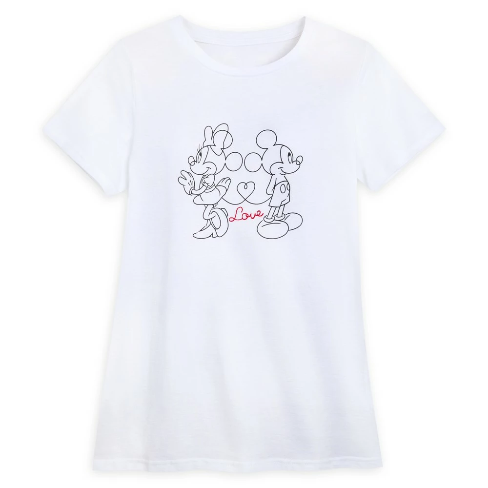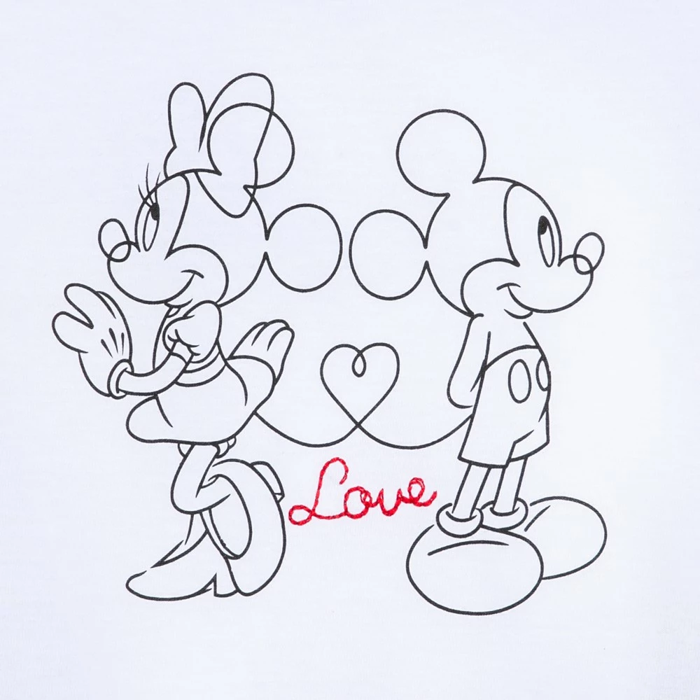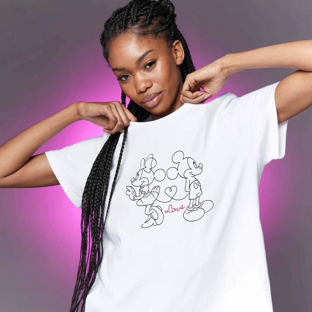 Ajoutez un peu de douceur à votre garde-robe avec ce t-shirt Mickey et Minnie ! Ce modèle présente un coeur formé par les queues des deux personnages.