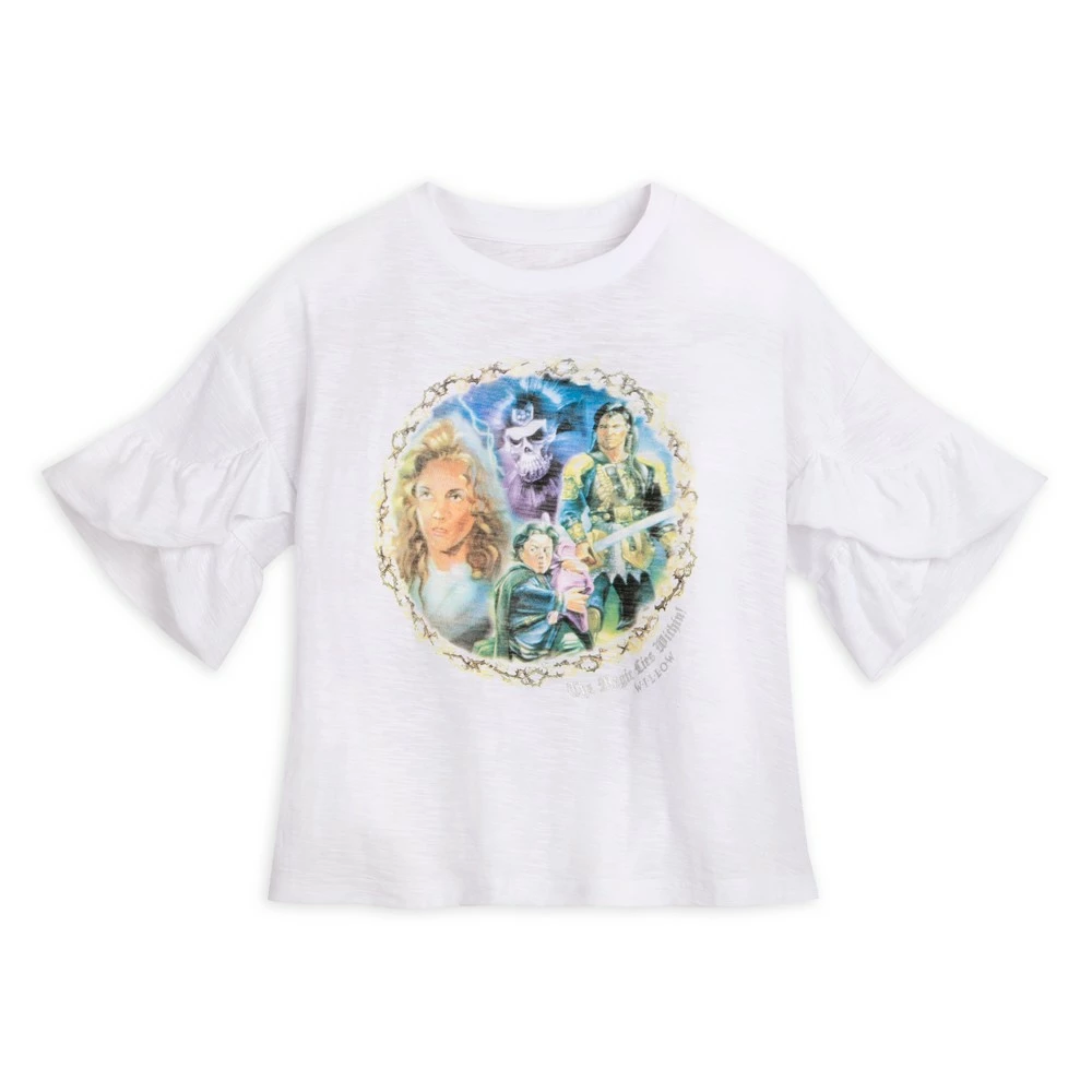 Oubliez tout ce que vous savez et vivez de nouvelles aventures avec ce t-shirt Willow ! Ce modèle court comprend un motif style rétro à l’effigie des personnages du film, ainsi que des volants sur les manches.
