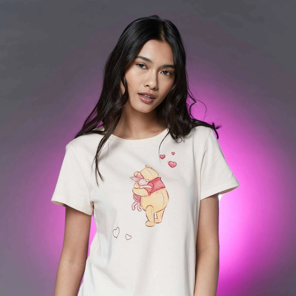 Un câlin est toujours de la bonne taille ! Ce t-shirt adorable rend hommage à l’amitié de vos personnages préférés, Winnie l’Ourson et Porcinet. Ce modèle craquant présente un motif classique à l’effigie des personnages à l’avant.