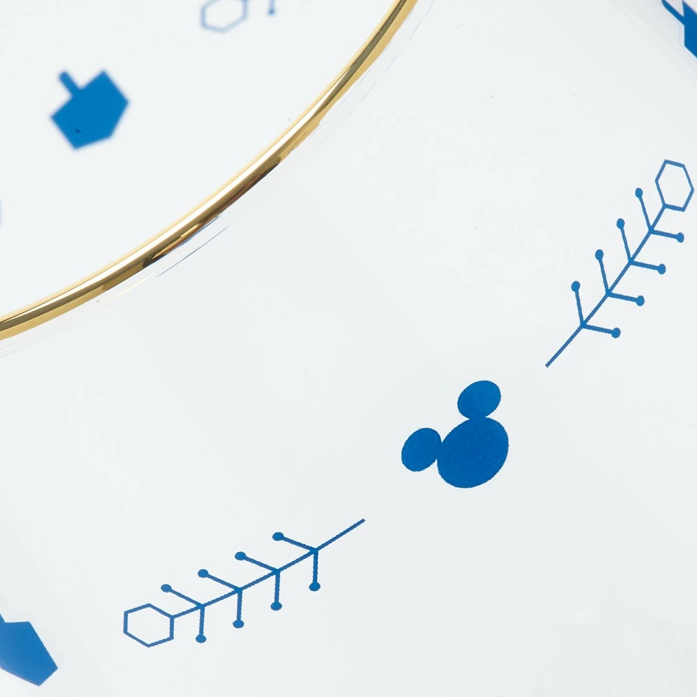 Levez votre verre Mickey à la fête des Lumières ! Il apportera une touche festive à votre vaisselle grâce à sa bordure dorée et son motif Hanoucca inspiré de Disney.