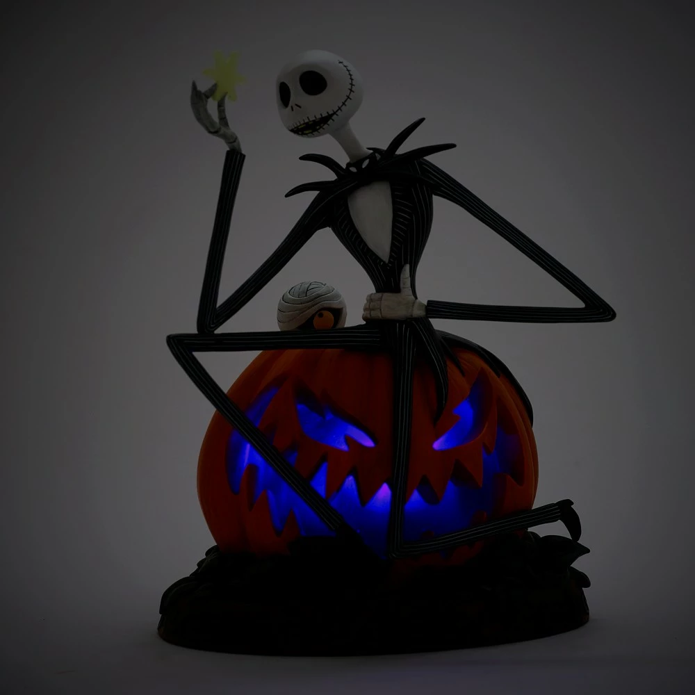 Cette figurine finement détaillée représente Jack Skellington assis sur une citrouille qui contemple les étoiles sous l’oeil attentif de Mummy Boy. Un accessoire indispensable pour prolonger la saison d’Halloween !