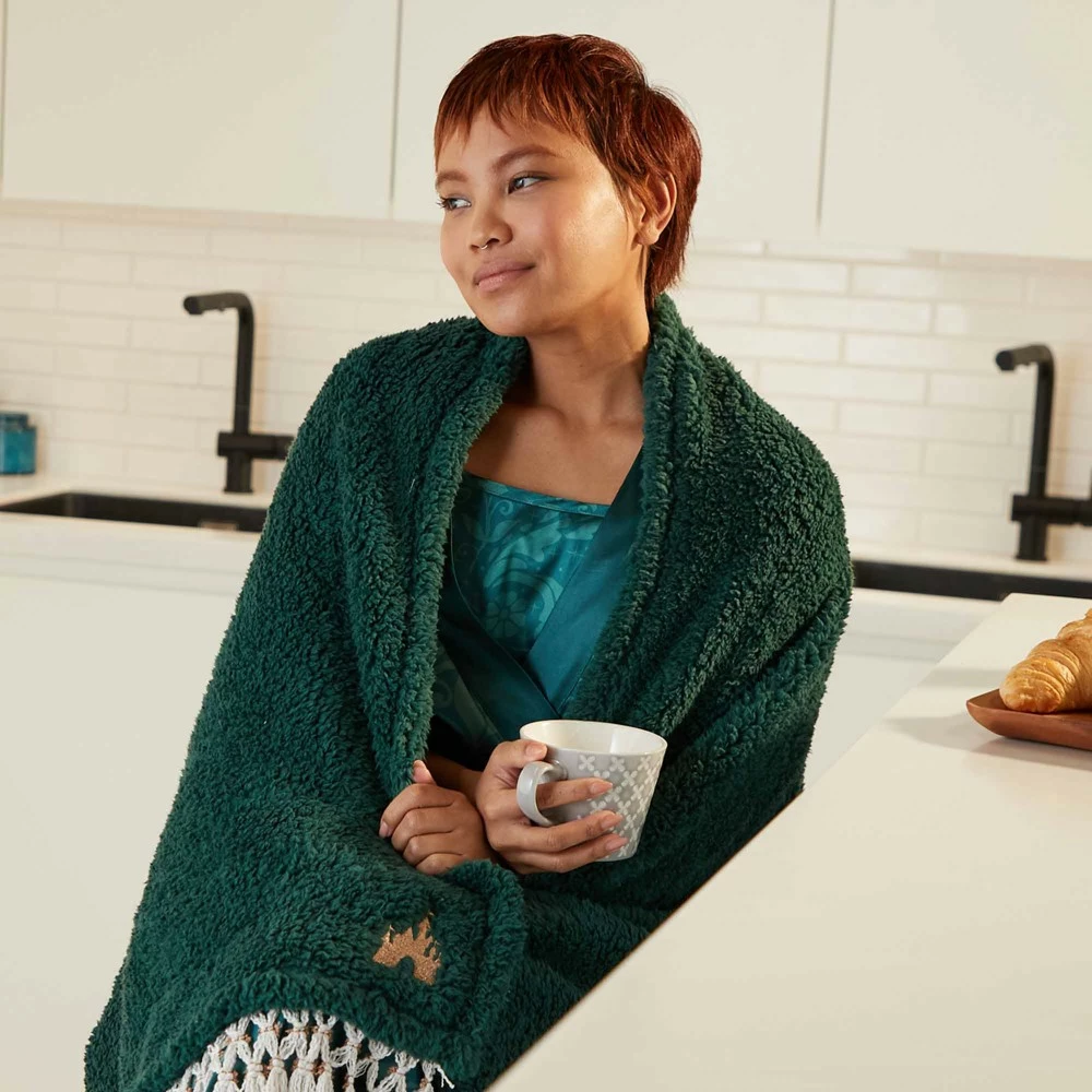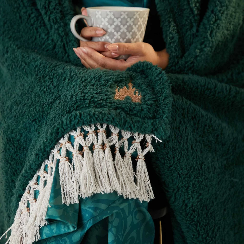 Blottissez-vous sous ce plaid polaire ! Ses pampilles en bordure et ses broderies dorées auront tôt fait de vous séduire.