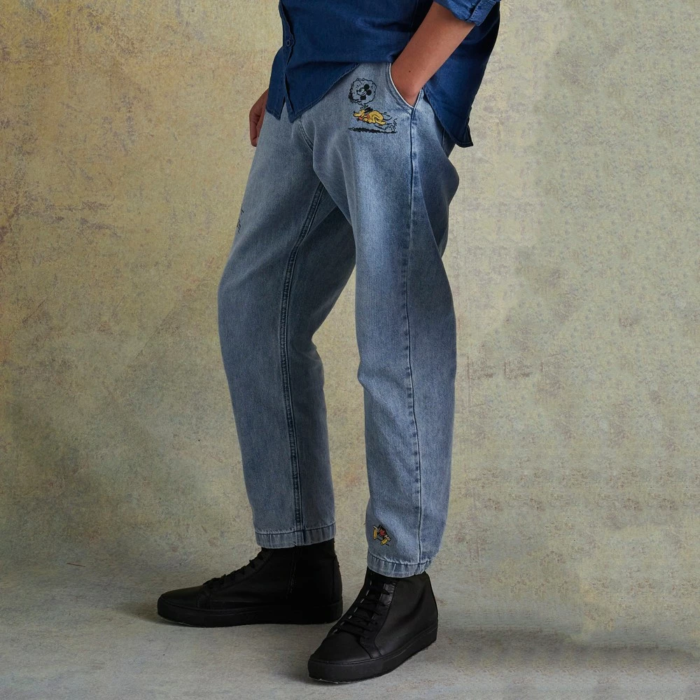 Ajoutez une touche de Disney à votre garde-robe avec ce jean Mickey et Pluto ! Ce modèle comprend un motif personnages façon bande dessinée et une taille élastique.