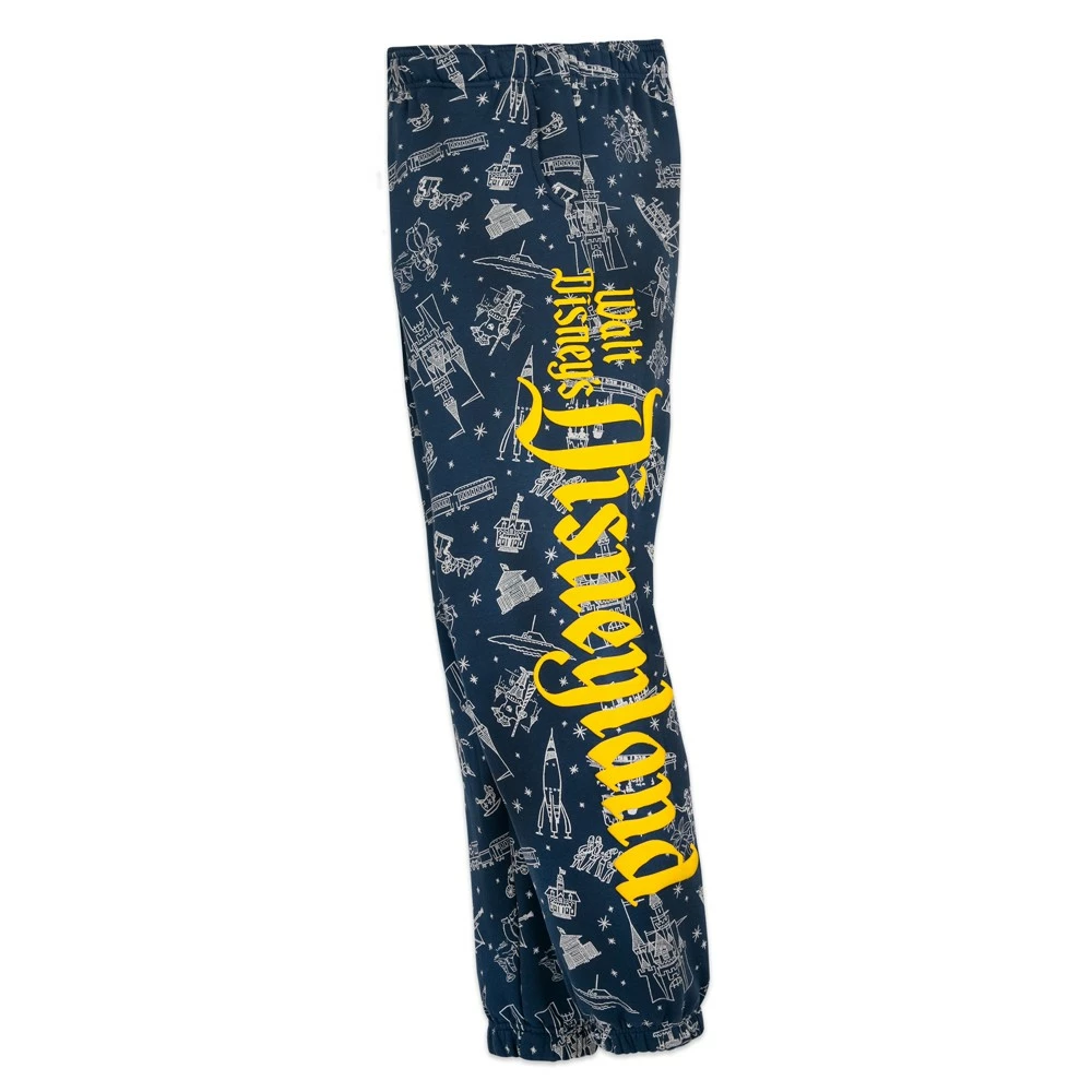 Toutes vos attractions préférées de Disneyland sont représentées sur le motif intégral de ce pantalon tendance de la collection Disney100. En examinant ce modèle confortable, vous pourrez, par exemple, voir le Space Mountain, le monorail et le château de Fantasyland, et vous aurez envie de retourner à l’endroit le plus joyeux du monde.