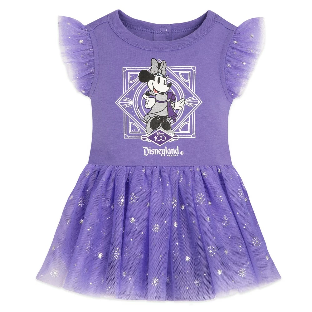 Bébé aussi peut fêter le centenaire de Disney avec cette amusante petite robe. Ce modèle adorable comprend un imprimé Minnie Disney100 avec détails à l’encre métallisée, manches en tulle et une jupe à imprimé feux d’artifice.