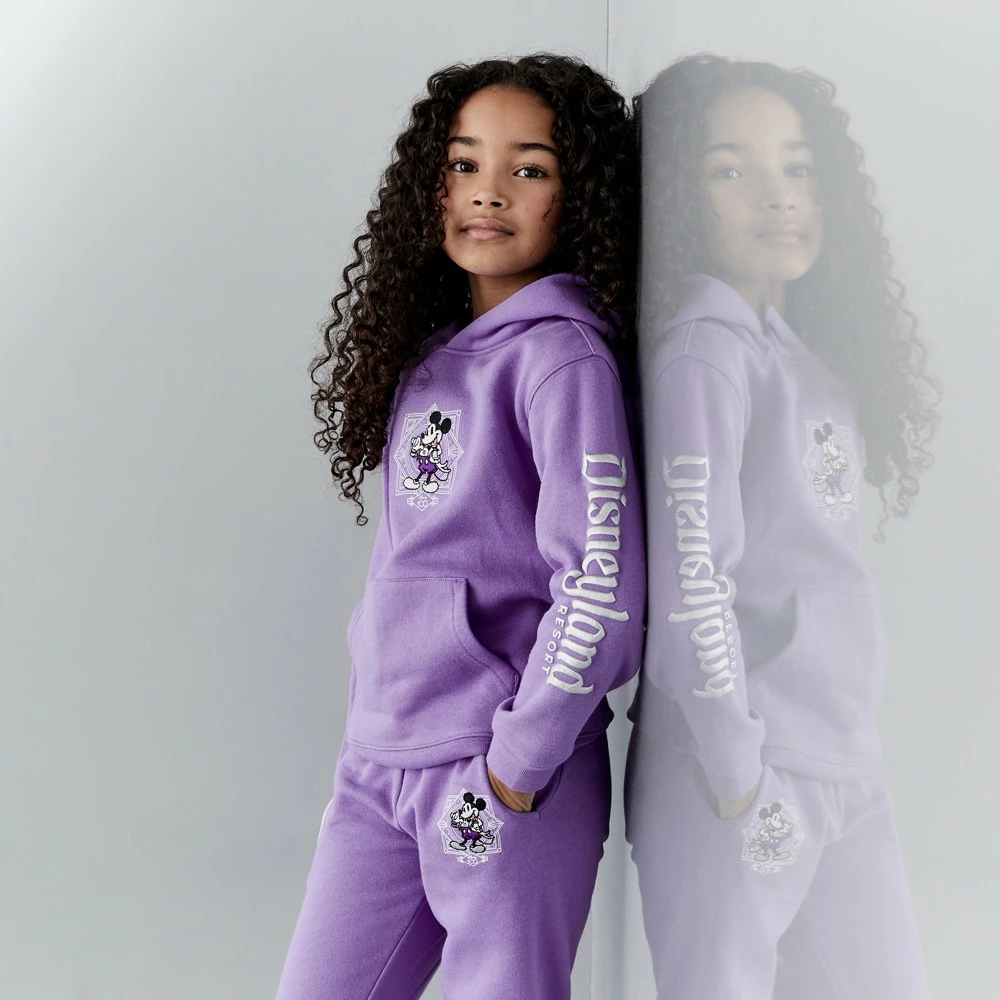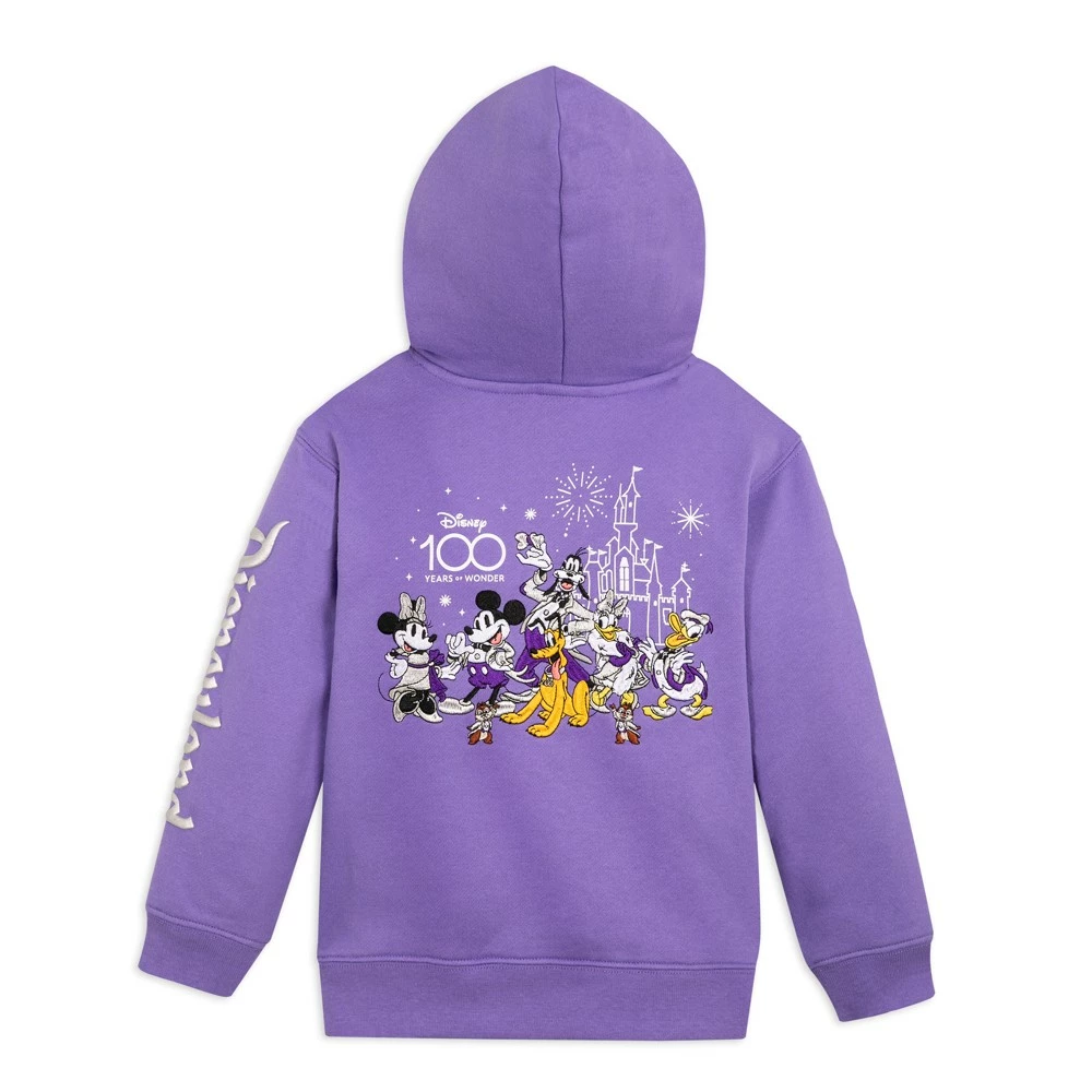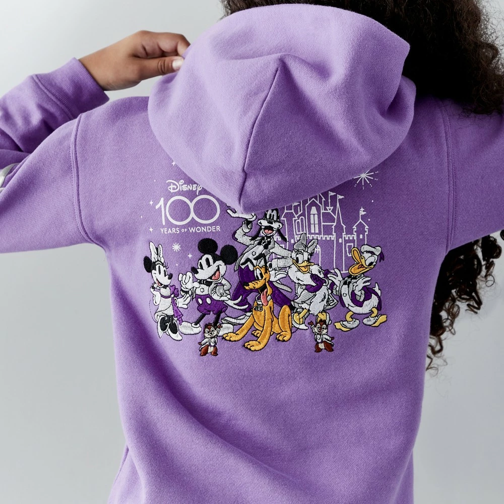 Sur ce sweatshirt à capuche, Mickey et ses amis rayonnent à l’occasion du centenaire de Disney. Ce modèle comporte des broderies à l’effigie des personnages à l’avant comme à l’arrière, et un logo métallisé « Disneyland » en relief sur la manche.