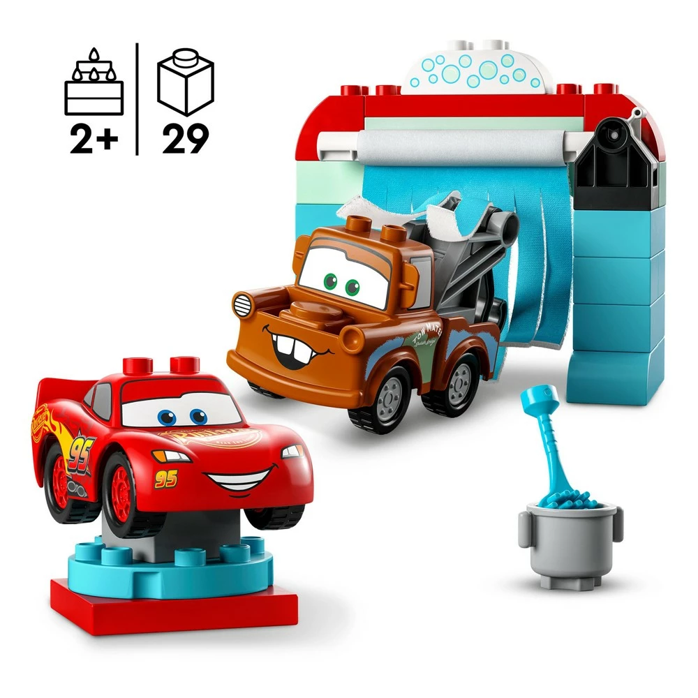 Cet ensemble LEGO DUPLO Disney Pixar Le station de lavage de Flash McQueen et Martin (10996) ravira les enfants âgés de 2 ans et plus. Ce jeu de construction leur permettra de chouchouter leurs personnages Cars préférés.
