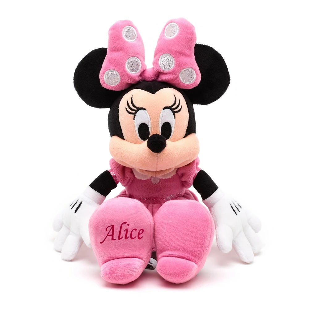 Montrez votre amour pour Minnie en adoptant cette merveilleuse peluche Minnie Mouse ! Cette version intermédiaire présente de belles broderies, une tenue à pois rose et un ventre mou rempli de billes de polystyrène.